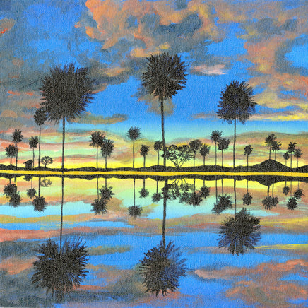 Discover the beauty of a calming beach sunset with this hand-painted print that captures the peacefulness of an evening stroll among sand and palm trees. Our 12x12 archival quality print draws you into a peaceful paradise that will enhance the beauty of your beach photos. Enjoy the tranquility of the beach with our Coastal Sunset print!