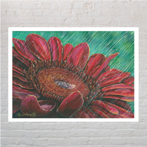 Raindrop Red is a 12x16 art print on high quality cardstock.  This beautiful print is ready for framing and with brighten up any space.