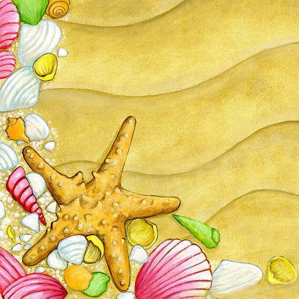 Capture your beach memories with Treasures By The Sea! Our seashell scrapbook print is the perfect way to preserve and showcase your favorite moments by the shore. Relive the salty breeze, warm sun, and sand between your toes with this beautiful print. Add it to your collection now!